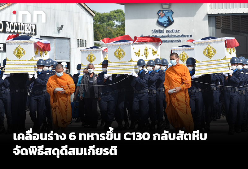 เคลื่อนร่าง 6 ทหารขึ้น C130 กลับสัตหีบจัดพิธีสดุดีสมเกียรติ