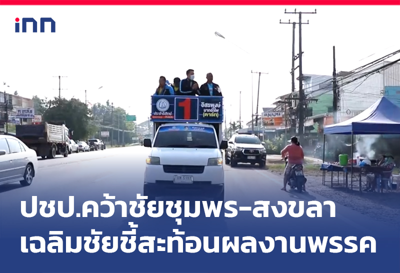 ปชป.คว้าชัยชุมพร-สงขลา เฉลิมชัยชี้สะท้อนผลงานพรรค จุริยทร์ขอบคุณจะตอบแทนพี่น้องชาวใต้และเร่งแก้ปัญหาที่เกิดขึ้น