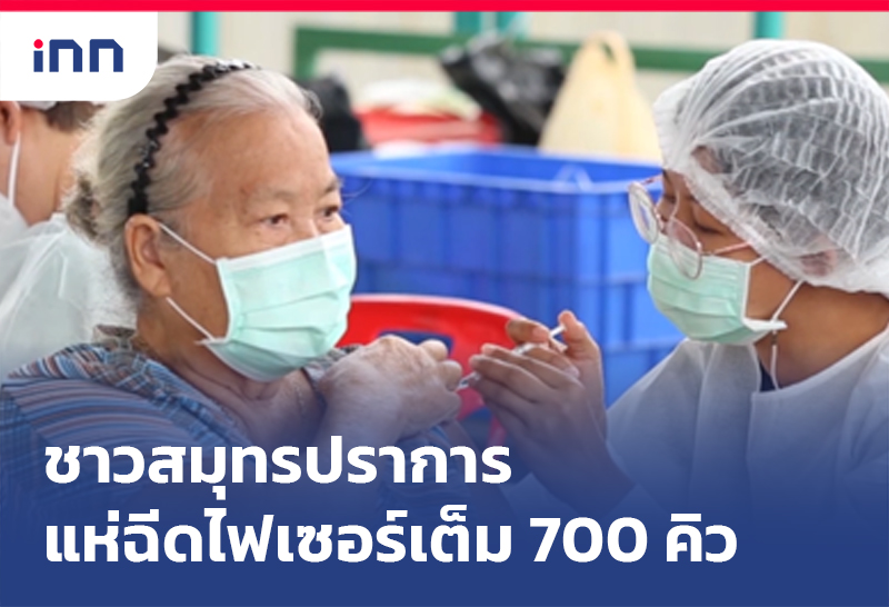 ชาวสมุทรปราการ แห่ฉีดไฟเซอร์เต็ม 700 คิว