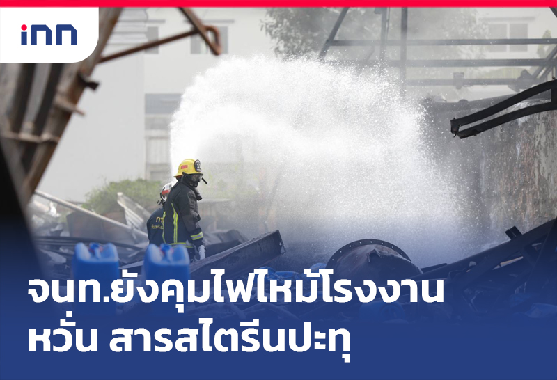 จนท.ยังคุมไฟไหม้โรงงาน หวั่น สารสไตรีนปะทุ