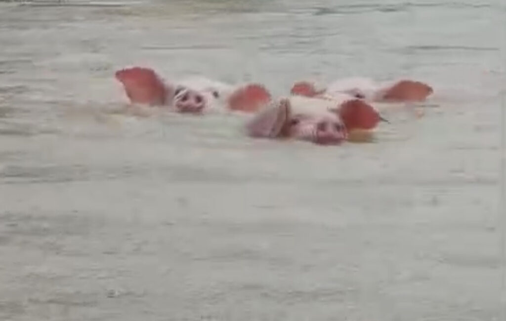 คลิปนาที!3น้องหมูถูกกระแสน้ำพัด