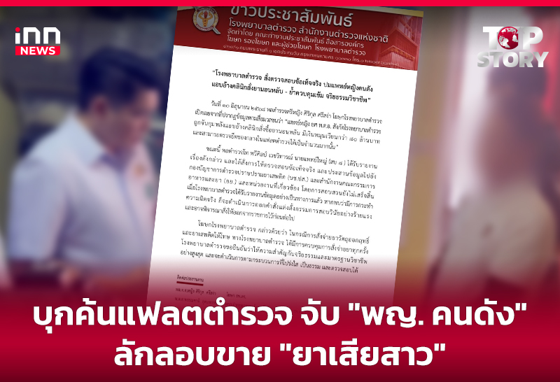 บุกค้นแฟลตตํารวจ จับ “พญ. คนดัง” ลักลอบขาย “ยาเสียสาว”