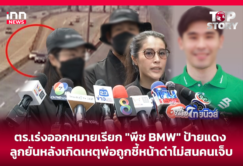ตร.เร่งออกหมายเรียก “พีช BMW” ป้ายแดง ลูกยันหลังเกิดเหตุพ่อถูกชี้หน้าด่าไม่สนคนเจ็บ