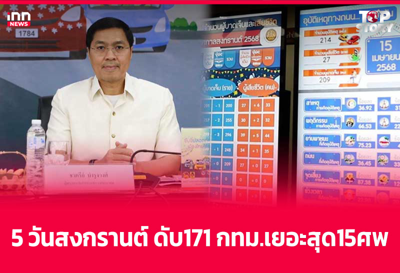 5 วันสงกรานต์ ดับ171 กทม.เยอะสุด15ศพ