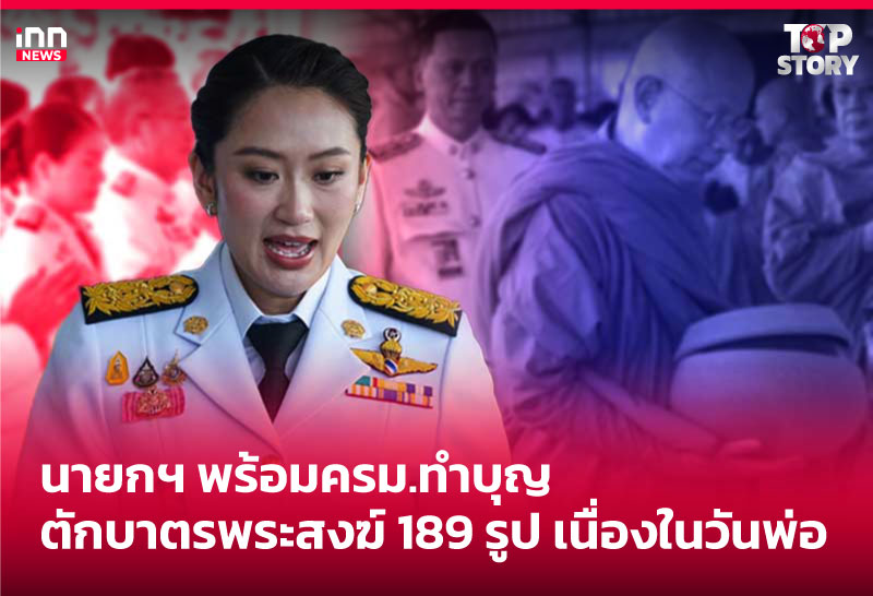 นายกฯ พร้อมครม.ทำบุญตักบาตรพระสงฆ์ 189 รูป เนื่องในวันพ่อ
