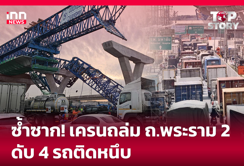 ซํ้าซาก! เครนถล่ม ถ.พระราม 2 ดับ 4 รถติดหนึบ