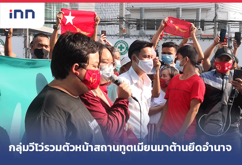 กลุ่มวีโว่ พร้อม"เพนกวิน-รุ้ง" และแรงงานชาวเมียนมารวมตัวหน้าสถานทูต