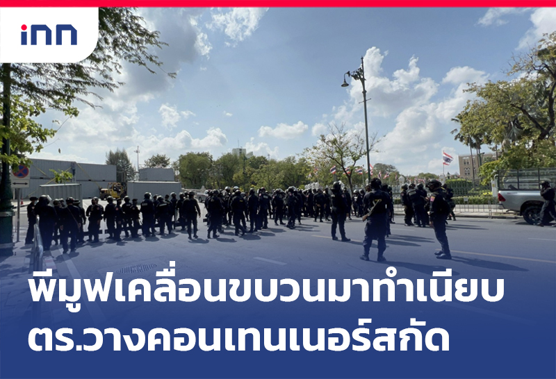 พีมูฟ เคลื่อนขบวนจากนางเลิ้งมาทำเนียบ ทวงถามคืบหน้า 15 ข้อเรียกร้อง ตำรวจวางตู้คอนเทนเนอร์ รอรับ 2 ชั้น ป้องกันกลุ่มผู้ชุมนุม