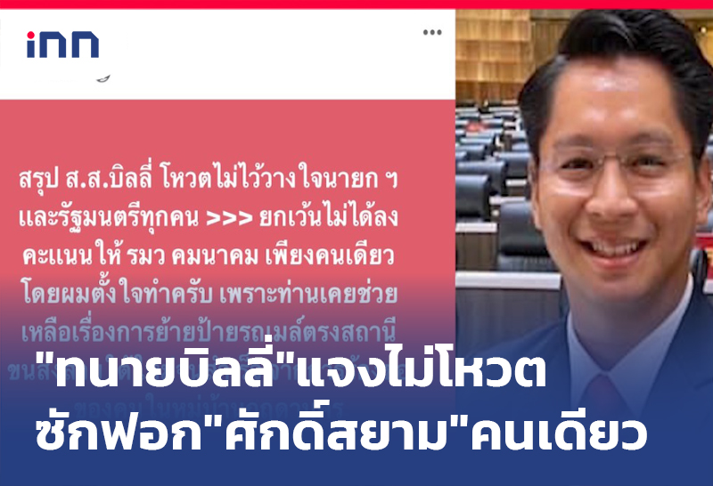 "ทนายบิลลี่" ส.ส.ก้าวไกล แจงไม่โหวตซักฟอก "ศักดิ์สยาม" เพียงคนเดียว เหตุความสัมพันธ์ส่วนตัวไม่เกี่ยวการย้ายพรรค ยอมรับไม่ไปต่อกับก้าวไกล เหตุทัศนคติไม่ตรงกัน แต่ยังสนับสนุนพรรคฝ่ายประชาธิปไตย