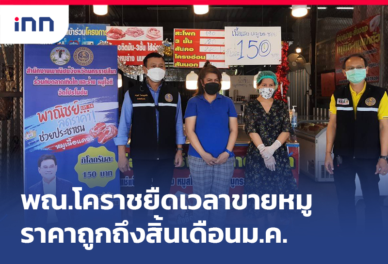 ชาวโคราชเฮได้กินหมูถูกต่อ พาณิชย์ยืดเวลาโครงหมูพาณิชย์ลดราคาไปจนถึงสิ้นเดือน ม.ค.65 พร้อมเพิ่มจุดขายหมู กก.ละ 150 บาทจาก 6 จุดเป็น 13 จุด หวังช่วยเหลือผู้บริโภค