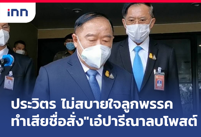 "พล.อ.ประวิตร" ไม่สบายใจ ลูกพรรคแสดงความเห็นส่วนตัว ทำเสียชื่อพรรค สั่ง "เอ๋ ปารีณา" ลบโพสต์ ทันที