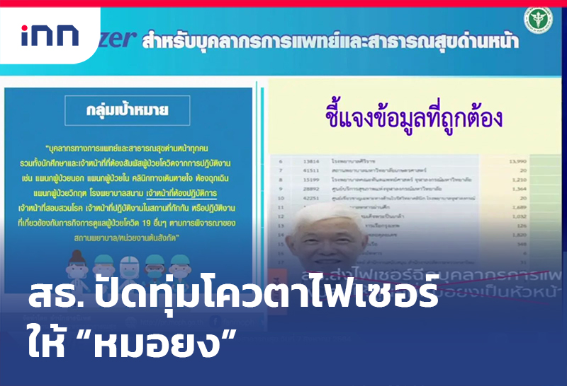 สธ.ย้ำ แอสตราฯส่งวัคซีนให้ไทย เดือน ส.ค.อีก 5.4 ล้านโดส - ปัดทุ่มโควตาไฟเซอร์ให้หมอยง