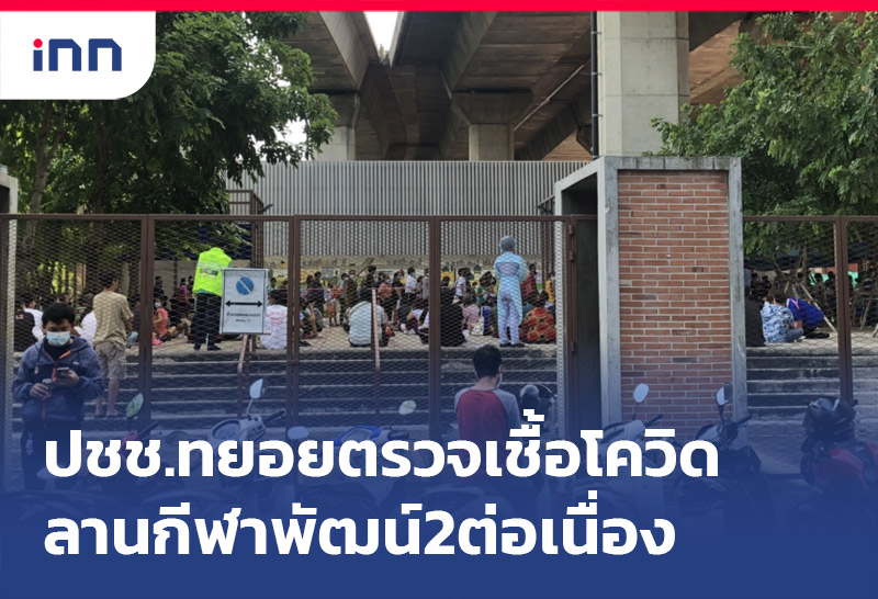 ประชาชนทยอยเข้ารับการตรวจหาเชื้อโควิด-19 ลานกีฬาพัฒน์ 2 ต่อเนื่อง จนท.ดูแลอำนวยความสะดวกไม่ให้แออัดจนเกินไป