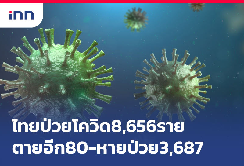 ไทยป่วยโควิดติดเชื้อใหม่ 8,656 สะสม 345,027 ราย เสียชีวิตอีก 80 หายป่วย 3,687 เหลือรักษาในโรงพยาบาล 90,578 คน