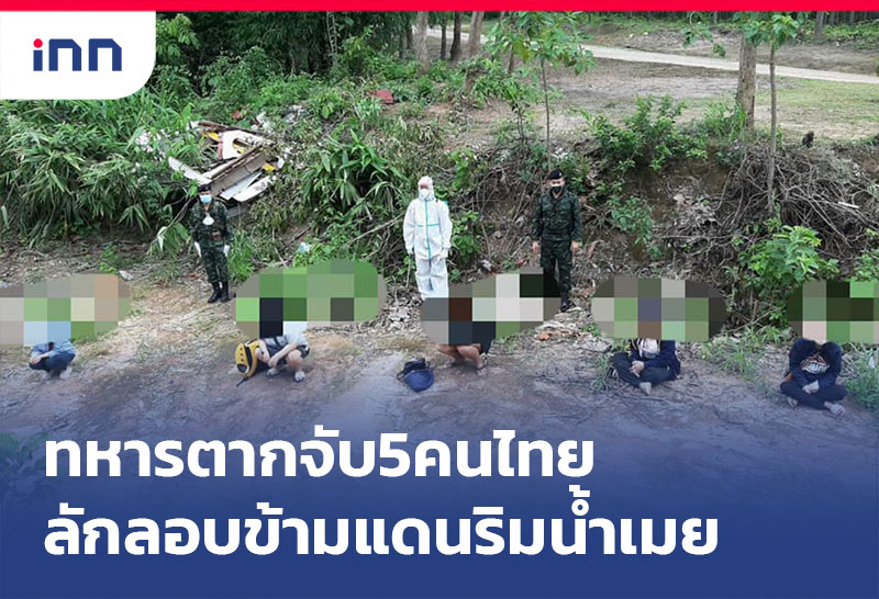 ทหารหน่วยเฉพาะกิจกรมทหารราบที่ 4 แม่สอด จับ 5 คนไทย ลักลอบข้ามแดน ริมน้ำเมย มาจากฝั่งเมียนมาตรวจ โควิดพบ 1 ราย ต้องนำกักตัวที่ รพ.แม่สอด