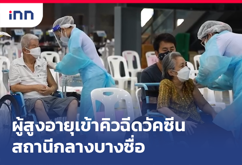 ผู้สูงอายุทยอยเข้ารับวัคซีนโควิด-19 ที่สถานีกลางบางซื่อ อย่างต่อเนื่อง ขณะเจ้าหน้าที่อำนวยความสะดวกชี้แจงขั้นตอน