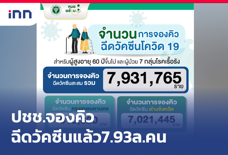 "เพจหมอพร้อม"อัปเดตยอดลงทะเบียนจองคิวฉีดวัคซีน 7.93 ล้านคนแล้ว