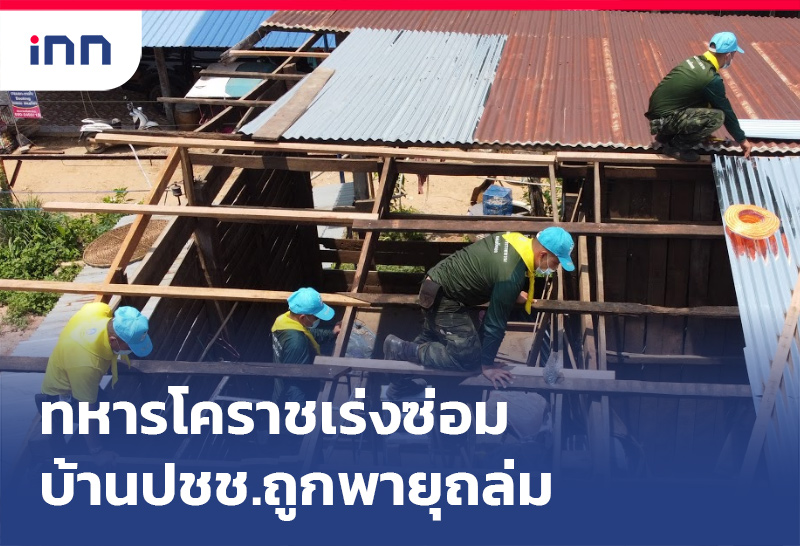 ทหารโคราช เร่งช่วยชาวบ้านซ่อมแซมบ้านเรือน หลังถูกพายุฤดูร้อนพัดถล่ม เสียหายกว่า56หลัง