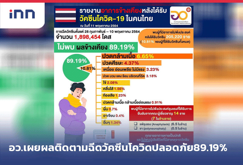 อว. เผยผลติดตามฉีดวัคซีนโควิด-19 มีความปลอดภัย 89.19%