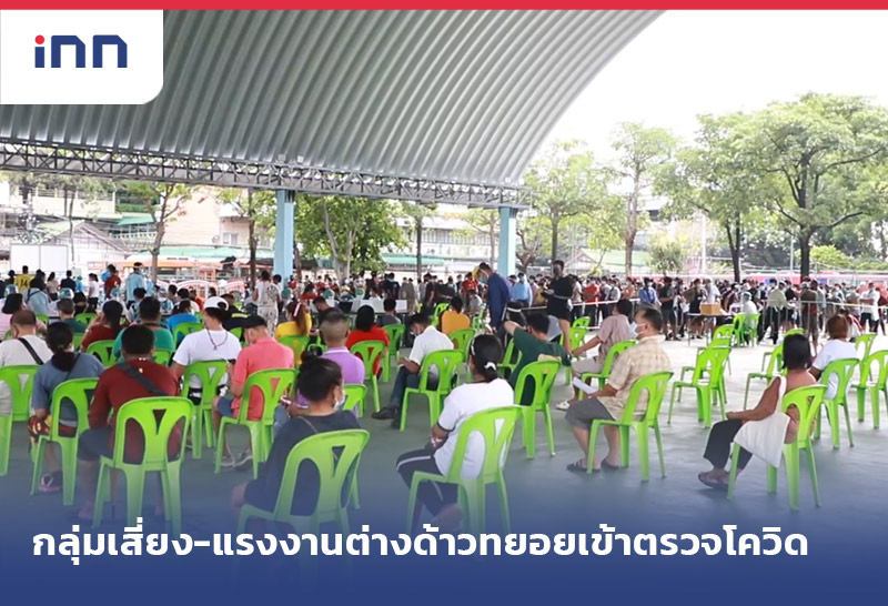 กลุ่มเสี่ยง-แรงงานต่างด้าว ทยอยเข้าตรวจโควิดชุมชนห้วยขวางต่อเนื่อง จนท.ดูแลเข้มงวด