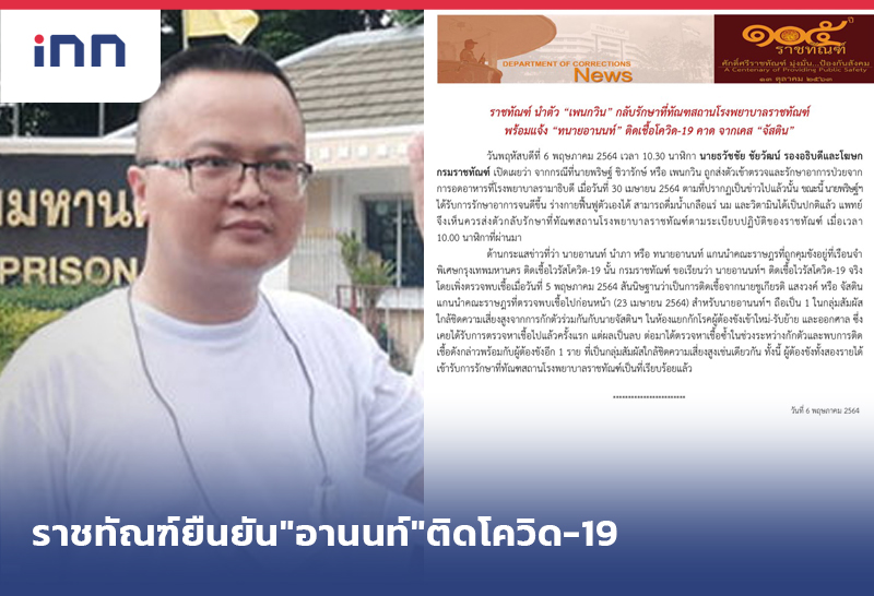 ราชทัณฑ์ยืนยัน“ทนายอานนท์” ติดเชื้อโควิด-19 จริง คาดมาจากเคส “จัสติน”