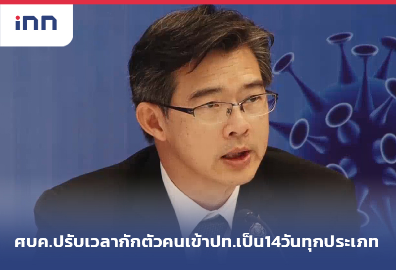ศบค.มีมติปรับระยะเวลาการกักตัวของผู้ที่เดินทางเข้าประเทศ จาก7วัน หรือ10วัน เป็น14วันทุกประเภท