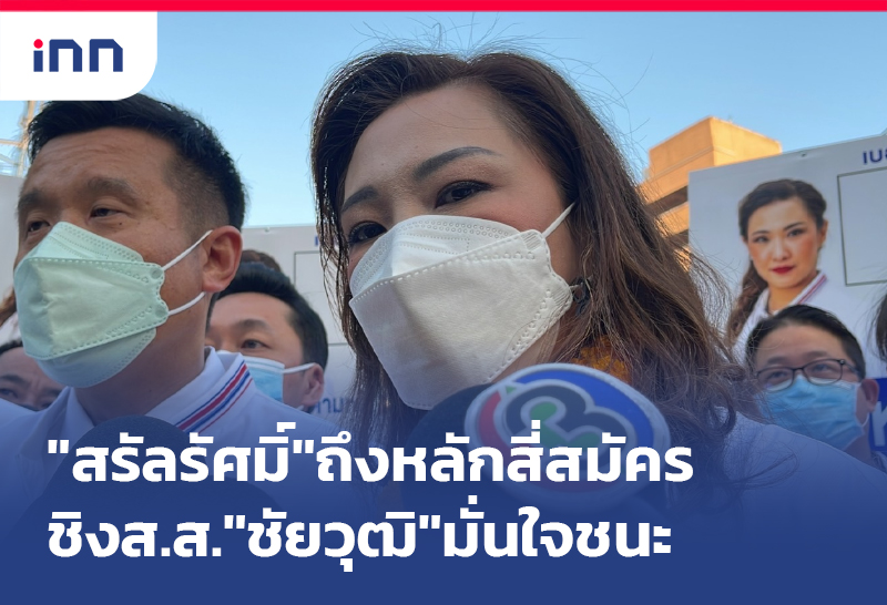 "สรัลรัศมิ์" ถึงหลักสี่ สมัครชิง ส.ส. มีมวลชนร่วมให้กำลังใจจำนวนมาก ด้าน "ชัยวุฒิ" มั่นใจยังรักษาเก้าอี้ไว้ได้