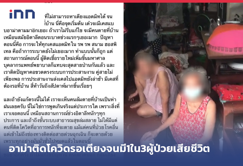 เพจดังแชร์! เคสอาม่าติดโควิด-19 รอเตียงในบ้านพักย่านบางคอแหลม สุดท้ายมี 1 ใน 3 ผู้ป่วยเสียชีวิต