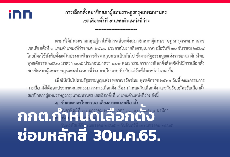 กกต.กำหนดวันเลือกตั้งซ่อมหลักสี่ 30 ม.ค. เปิดรับสมัคร 6-10 มค.นี้ กำชีบเตรียมความพร้อมยึดมาตรการป้องกันโควิด 19