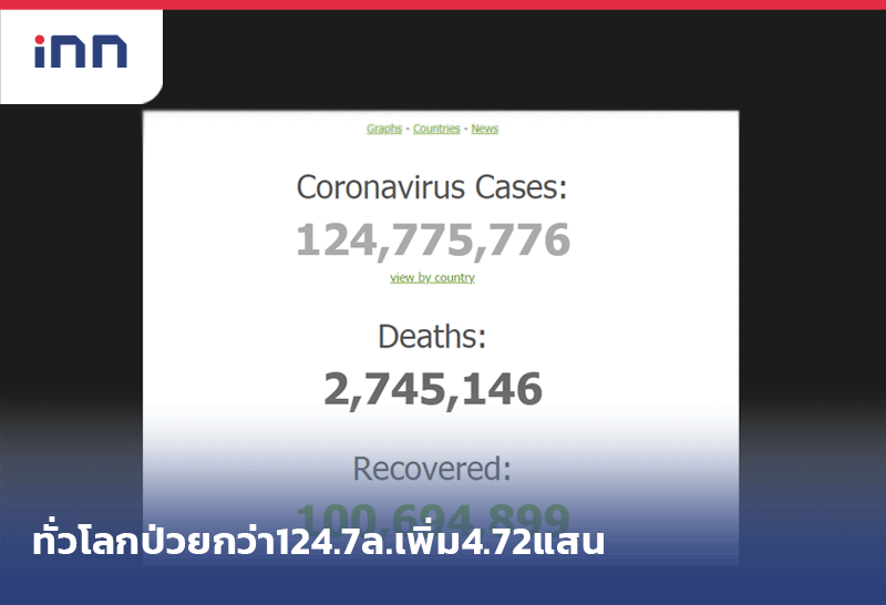 ทั่วโลกป่วยโควิด เพิ่ม472,692 ราย สะสมกว่า 124.7 ล้านราย