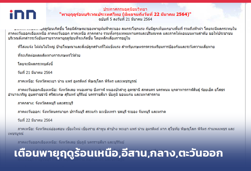 ประกาศเตือนพายุฤดูร้อน ภาคเหนือ อีสาน กลางตะวันออก มีฝนฟ้าคะนอง ลมแรงกับมีลูกเห็บตก