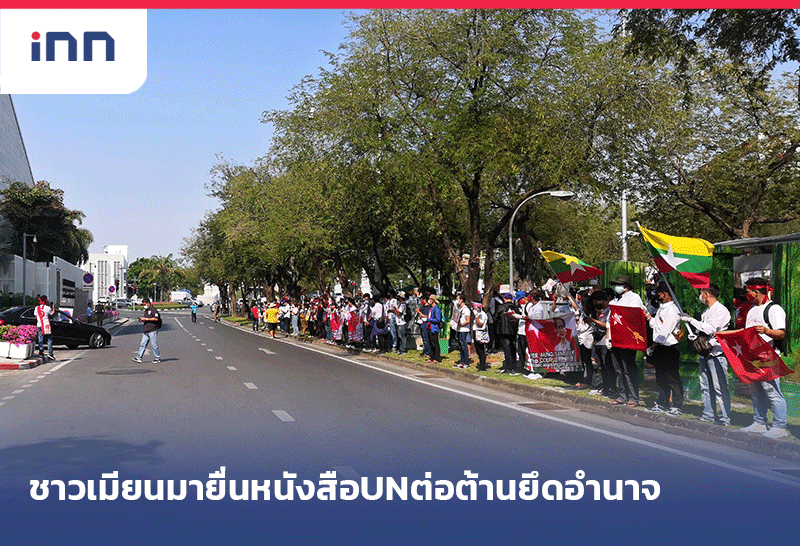 ชาวเมียนมานับร้อยนับร้อยคน รวมตัวยูเอ็นเรียกร้องช่วยเหลือ