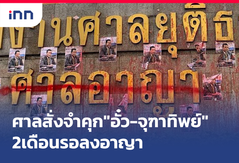 ศาลสั่งจำคุก "อั๋ว-จุฑาทิพย์" 2 เดือน รอลงอาญา ปมม็อบรีเด็มป่วน ปาสิ่งของหน้าศาลอาญา ด้านจำเลยที่1-3โดนโทษกักขัง 40 วัน จำเลยที่ 5 โดน 2 เดือน