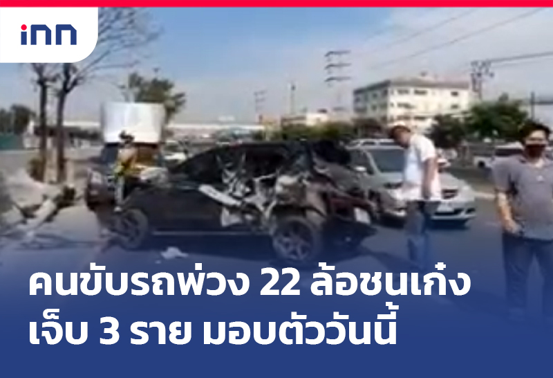 คนขับรถพ่วง 22 ล้อ ชนเก๋งเจ็บ 3 ราย เตรียมเข้ามอบตัววันนี้ ตร.แจ้งข้อหาขับรถโดยประมาทเป็นเหตุให้เกิดการเฉี่ยวชน