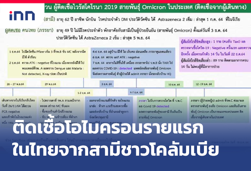 เปิดไทม์ไลน์ ผู้ติดเชื้อโอไมครอนรายแรกในไทย ติดจากสามีนักบินชาวโคลัมเบีย กลับจากไนจีเรีย