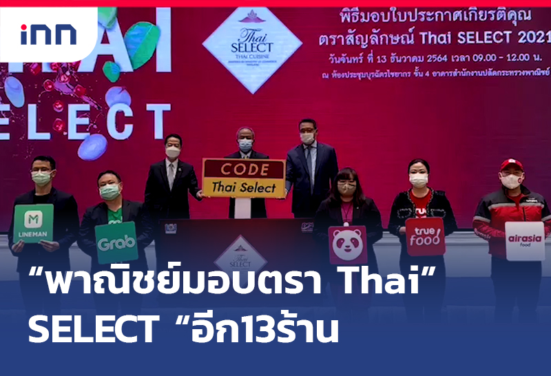 กระทรวงพาณิชย์ มอบตรา "Thai SELECT" ร้านอาหารไทย 13 ร้าน การันตีคุณภาพตรงตามมาตรฐานไทยแท้ขยายโอกาสธุรกิจร้านอาหารในประเทศมากยิ่งขึ้น