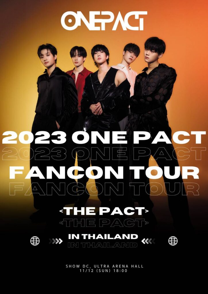เมื่อบอยกรุ๊ปน้องใหม่อย่าง “ONE PACT” ที่มีสมาชิกทั้งหมด 5 คน YOON JONGWOO , JAY CHANG , YEOM TAE GYUN , OH SEONGMIN , LEE YE DAM ซึ่งหนุ่ม ๆ ล้วนเป็นผู้เข้าแข่งขันจากรายการ BOYS PLANET และหนึ่งในสมาชิกของวง “ONE PACT” อย่าง YEOM TAE GYUN หรือที่รู้จักกันในนาม “แทค” อดีตสมาชิกวง Ciipher ที่เคยอาศัยอยู่ที่ประเทศไทยมานานถึง 17 ปี ทำให้สามารถสื่อสารเป็นภาษาไทยได้ไม่ต่างจากคนไทยเลย ต้องบกเลยว่าทั้ง 5 หนุ่มวง “ONE PACT” ไม่ธรรมดาแน่นอน ความสามารถรอบด้าน ทั้งร้อง เต้น แร็ป ได้อย่างเต็มสตรีม ในเดือนตุลาคมนี้ หนุ่ม ๆ “ONE PACT” เตรียมปล่อย Pre-Debut Singel ให้แฟน ๆ ได้ติดตาม พร้อมกันนี้ในเดือน พฤศจิกายน หนุ่ม ๆ “ONE PACT” จะปล่อย Mini Album ทั้งหมด 4 เพลงอีกด้วย หนุ่ม ๆ ทั้ง 5 คน “ONE PACT” จะมีจัดกิจกรรมกับแฟน ๆ ชาวญี่ปุ่นในช่วงสิ้นเดือนตุลาคมนี้ และในเดือนพฤศจิกายน หนุ่ม ๆ ทั้ง 5 คน “ONE PACT” จะมาหาแฟน ๆ ชาวไทย เพราะความสามารถรอบด้านของทั้ง 5 หนุ่มนั้น ทำให้ผู้จัดใจดีอย่าง GANADA Entertainment พาหนุ่ม ๆ “ONE PACT” มาหาแฟน ๆ ชาวไทย และเป็นแฟนมีตติ้งครั้งแรกในประเทศไทยของหนุ่ม ๆ วง “ONE PACT” เตรียมมาเจอพวกเขาได้ในงาน 2023 ONE PACT FANCON TOUR <THE PACT> IN THAILAND วันอาทิตย์ที่ 12 พฤศจิกายน 2566 ณ SHOW DC, Ultra Arena Hall เวลา 18.00 น. พร้อมเปิดจำหน่ายบัตร Early Bird จัดโปรโมชั่นลดราคาค่าบัตร 20% ตั้งแต่ วันที่ 21 ตุลาคม 2566 ถึงวันที่ 26 ตุลาคม เวลา 11.59 น. และจะเปิดขายในราคาปกติตั้งแต่วันที่ 26 ตุลาคม 2566 ตั้งแต่เวลา 12.00 น. เป็นต้นไป