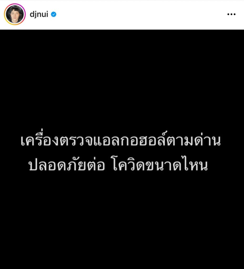 ทำเอานักแสดงอารมณ์ดี “ดีเจนุ้ย ธนวัฒน์”ถึงออกมาตั้งคำถามเรื่องความสะอาดในเครื่องตรวจแอลกอฮอล์ตามด่าน ว่าปลอดภัยจากโควิดแค่ไหน เนื่องจากเจ้าตัวหวั่นไม่สะอาดและไม่ปลอดภัย เพราะต้องรักษาตัวเพื่อทำงาน  ซึ่งเจ้าตัวได้ออกมาโพสต์ที่เขียนข้อความว่า “เครื่องตรวจแอลกอฮอล์ตามด่าน ปลอดภัยต่อโควิดขนาดไหน” พร้อมแคปชั่น“ขอความรู้ได้มั้ยครับ!! เครื่องตรวจแอลกอฮอล์ตามด่าน ปลอดภัยต่อโควิดขนาดไหน