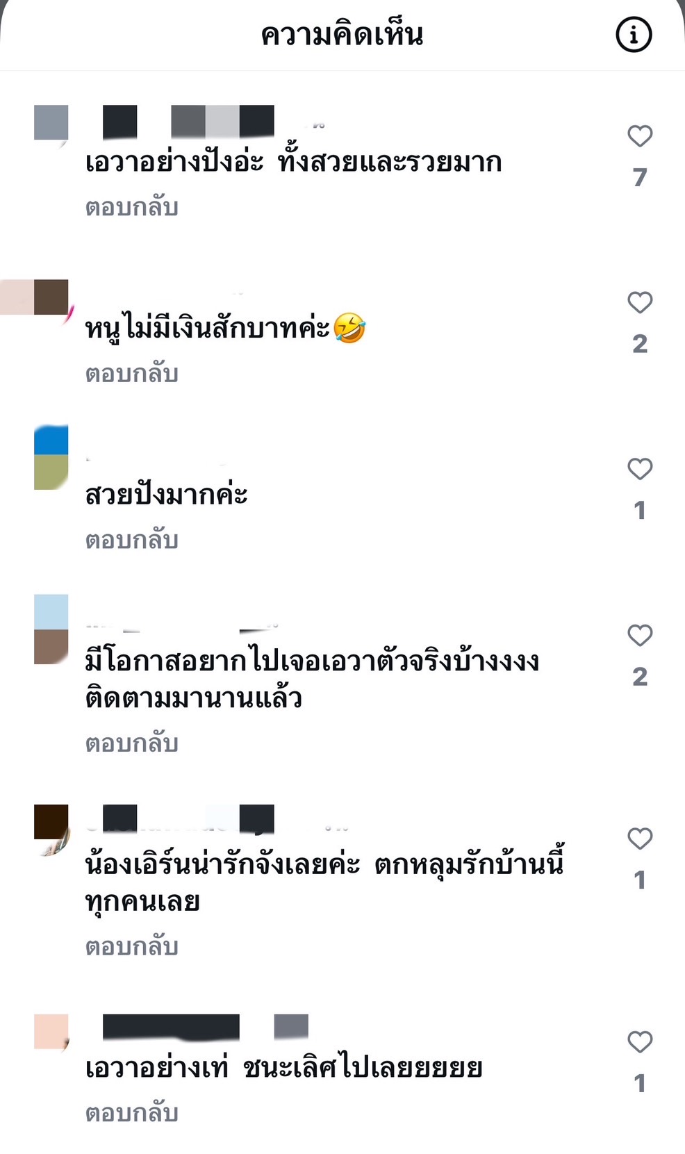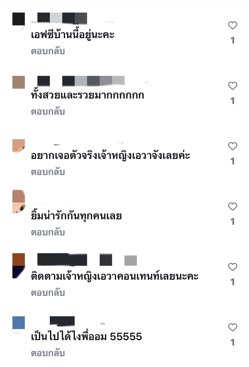 เมื่อแฟนๆได้เห็นคลิปนี้ของเอวาก็ได้เข้ามากดเลิฟและคอมเมนต์กันสนั่น อาทิ เอฟซีบ้านนี้อยู่ค่ะ , ทั้งสวยและรวยมากกกกก , ยิ้มน่ารักทุกคนเลย , เป็นไปได้ไงพี่ออม , เอวาอย่างเท่ชนะเลิศ , สวยปังมากค่ะ