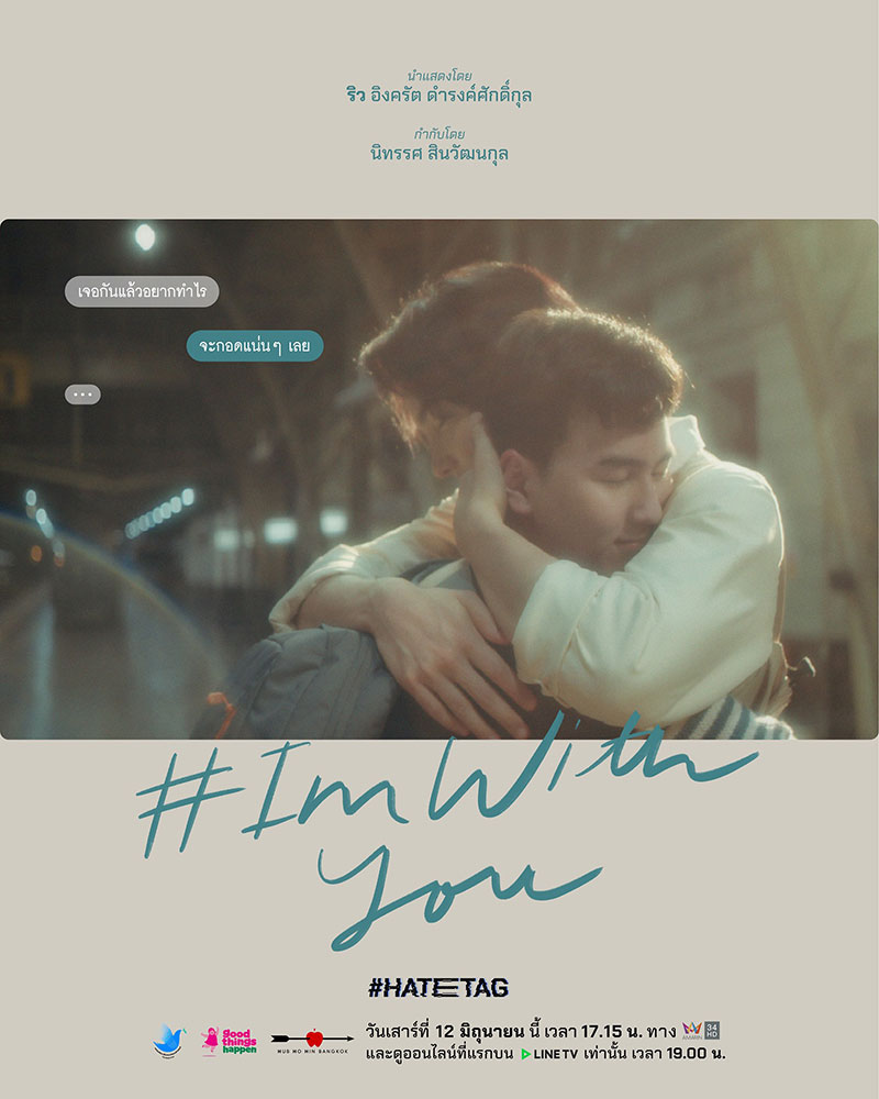 ติดตามชมหนังสั้นฝีมือผู้กำกับหน้าใหม่ สำหรับเรื่อง #ImWithYou นำแสดงโดย ริว-อิงครัต ดำรงศักดิ์กุล, สุทธิรักษ์ ทรัพย์วิจิตร และ ชยพัทธ์ วิรัตน์โยสินทร์ ออกอากาศ วันเสาร์ที่ 12 มิ.ย. 2564 ทางอมรินทร์ทีวีHD ช่อง34 ทุกวันเสาร์-อาทิตย์ เวลา 17.15 น. และ ดูออนไลน์ที่แรกบน LINE TV เท่านั้น เวลา 19.00 น.