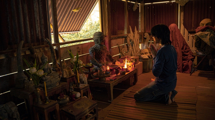 ธาม ดั้นด้นเดินทางมาหาพี่ชาย พระธี ที่วัดบนเกาะดอนสิงธรรม เพื่อแจ้งข่าวร้ายกับการจากไปของพ่อและแม่ เมื่อธามเดินมาถึงก็ได้พบเจอทั้งชาวบ้าน เณรและเด็กวัดรุ่นราวใกล้เคียงกัน ทั้งที่ถูกชะตาอย่าง เจษ หลานชายของหลวงตาเจ้าอาวาสคนเก่า และมีพวกไม่ถูกชะตาอย่างแรง เพราะมีข่าวลือว่าพระธีได้หนีหายสาบสูญหลังจากลงมือฆ่าเจ้าอาวาสคนเก่าจนมรณภาพ ธามไม่เชื่อกับข่าวลือเรื่องพระธีฆ่าคน พอๆกับการไม่นับถือหุ่นปั้นพ่อปู่สิงธรรมที่ดูเหมือนภูติผีมากกว่าเทพที่คอยปกปักรักษา จนกระทั่งเกิดเหตุอาเพศในหมู่บ้าน เมื่อมีหญิงสาวคนหนึ่งสูญหาย สัตว์ร้ายออกเพ่นพ่าน ผีตายโหงออกอาละวาด ชาวบ้านโกรธแค้นเตรียมตั้งพิธีกรรมสาปแช่งถึงมือมืด