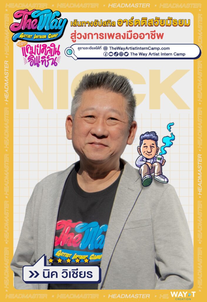 “พี่นิค” วิเชียร ฤกษ์ไพศาล ผู้บุกเบิก ริเริ่มและพัฒนา วงการเพลงไทยในทุกมิติมานานกว่า 30 ปี อยู่เบื้องหลังความสำเร็จของศิลปินมากมาย ล่าสุด “พี่นิค” ส่งโปรเจค THE WAY Artist Intern Camp เปิดเส้นทางอัปสกิลอาร์ตติสวัยมัธยมสู่วงการเพลงมืออาชีพ พร้อมเวทีพิสูจน์ฝีมือ ชิงรางวัลมูลค่ากว่า 2 ล้านบาท และโอกาสในการทำงานจริง โดยมี “พี่นิค และทีม WAY-T CREATION ดูแลการทำงานให้ทุกขั้นตอน เปิดรับสมัครวงดนตรีวัยมัธยม 1 มี.ค.- 10 พ.ค. 2566 นี้ผ่านทางเว็บ www.TheWayArtistInternCamp.com