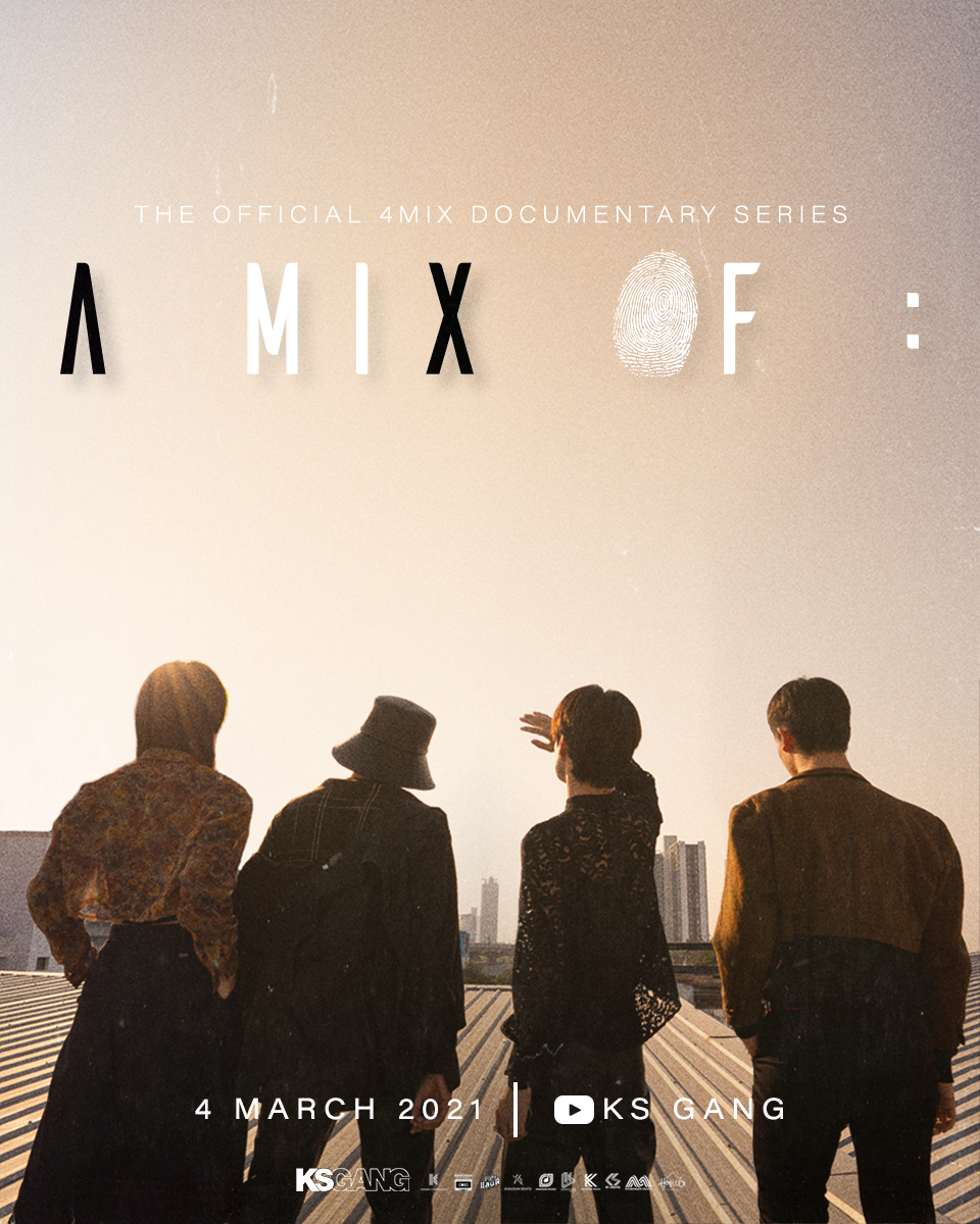 “A MIX OF : บอกเล่าเรื่องราวของ ‘4MIX’ ย้อนไปในช่วงแรกของการเปิดค่าย KS GANG ที่เราเริ่มมองหาเด็กรุ่นใหม่ตามวงการต่างๆ เพื่อพัฒนาให้พวกเขากลายเป็นศิลปินที่มีคุณภาพ ซึ่ง 4 คนนี้เขาจะมีการรวมทีมเพื่อเต้นตามงานต่างๆ ทีมงานไปเจอเข้าเลยมีการชักชวนน้องๆ เข้ามาเป็นศิลปินในค่าย เพราะเรามองว่า ‘4MIX’ มีความสามารถ มีความเป็นทีมเวิร์ค และที่สำคัญคือ ‘4MIX’ มีเสน่ห์ที่ไม่เหมือนใคร วงนี้น่าค้นหา คิดว่าจะเข้ามาสร้างอะไรใหม่ๆ ให้กับวงการ T-POP ของไทย เลยหยิบวงนี้มาปั้นเป็นศิลปินฝึกหัดของค่ายใช้เวลาเกือบ 2 ปี ซึ่งใน Documentary Series ชุดนี้ ยังเป็นการถ่ายทอดเรื่องราวปัจจุบันแบบเรียลไทม์กึ่งเรียลลิตี้ของ ‘4MIX’ ให้ได้ตามติดชีวิตของพวกเขา เพื่อร่วมเดินทางและเติบโตไปพร้อมกับพวกเขา ตั้งแต่เข้าคลาสเรียนร้อง เรียนเต้น เพื่อฝึกฝนให้ 4 หนุ่ม มีศักยภาพและพร้อมเดบิวต์มีผลงานเพลงเป็นของ ‘4MIX’ เอง ในช่วงเดือนพฤษภาคมนี้ครับ” ป๊อบ – กิตติวัฒน์ ปังประเสริฐกุล Senior Strategic Planner “KS GANG” กล่าวถึง ‘4MIX’