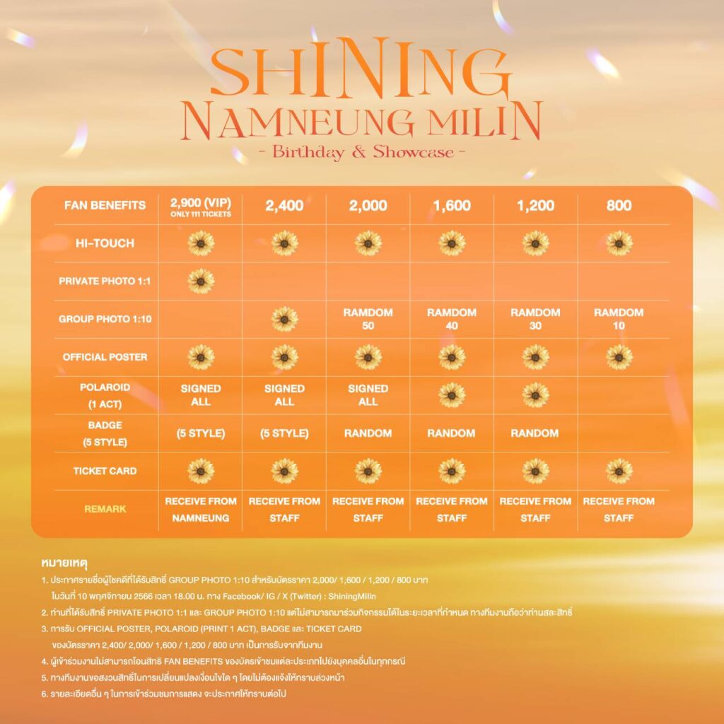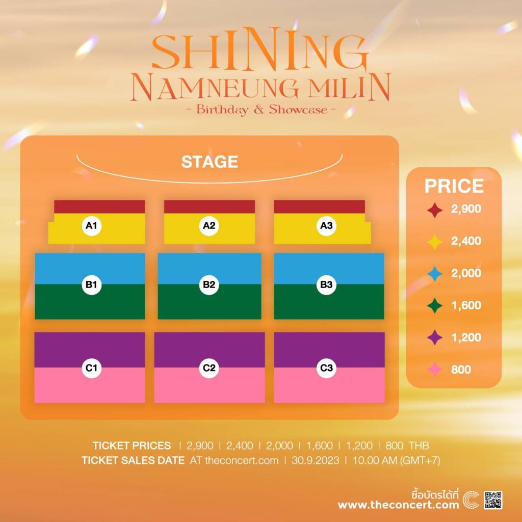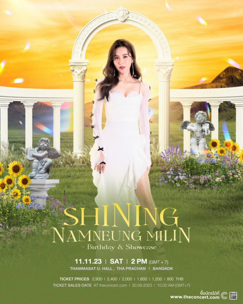 สำหรับงาน “SHINING NAMNEUNG MILIN Birthday & Showcase” เปิดจำหน่ายบัตร วันเสาร์ที่ 30 กันยายน 2566 เวลา 10.00 น. เป็นต้นไป โดยช่องทาง www.theconcert.com