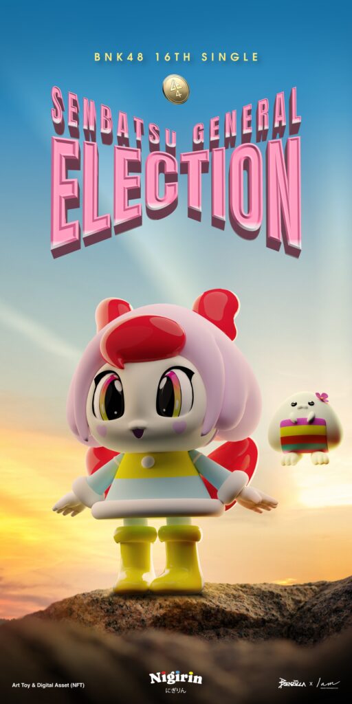 สร้างความฮือฮาให้แฟนคลับอีกครั้ง สำหรับการกลับมาของกิจกรรม BNK48 16th Single Senbatsu General Election หรือ GE งานเลือกตั้งครั้งที่ 4 โดยบริษัท อินดิเพนเด้นท์ อาร์ทิสท์ เมเนจเม้นท์ จำกัด หรือ ค่าย iAM ซึ่งเปิดโอกาสให้แฟนๆ ได้ร่วมโหวตไอดอลในดวงใจ “BNK48 – CGM48” ที่ลงมัครในครั้งนี้ทั้งหมด 64 คน โดยผู้ที่ได้รับการโหวตสูงที่สุด 16 คนจะอยู่ในซิงเกิลที่ 16 เพื่อเดินทางไปเกาหลี และจะได้ทำเพลงร่วมกับค่าย JYP Publishing ซึ่งวิธีการลงคะแนนโหวตได้มีการใช้ Blockchain Technology ผ่าน iAM48 Application ในการลงคะแนนโหวตครั้งนี้ด้วย นอกจากนี้สำหรับผู้ที่มี BNK Token สามารถนำมา Redeem เพื่อเป็นเจ้าของ Digital Asset (NFT) หรือ Original Character Art Toy ที่มีชื่อว่า “Nigirin”(นิกิริน) ออกแบบโดย “เบนซ์-ปริญญา ศิริสินสุข” หรือ “Benzilla” ศิลปิน Street Art ระดับโลก และจะได้รับ GE4 Token เพื่อมาใช้ในการโหวตอีกด้วย ซึ่ง “เบนซ์” กล่าวว่า
