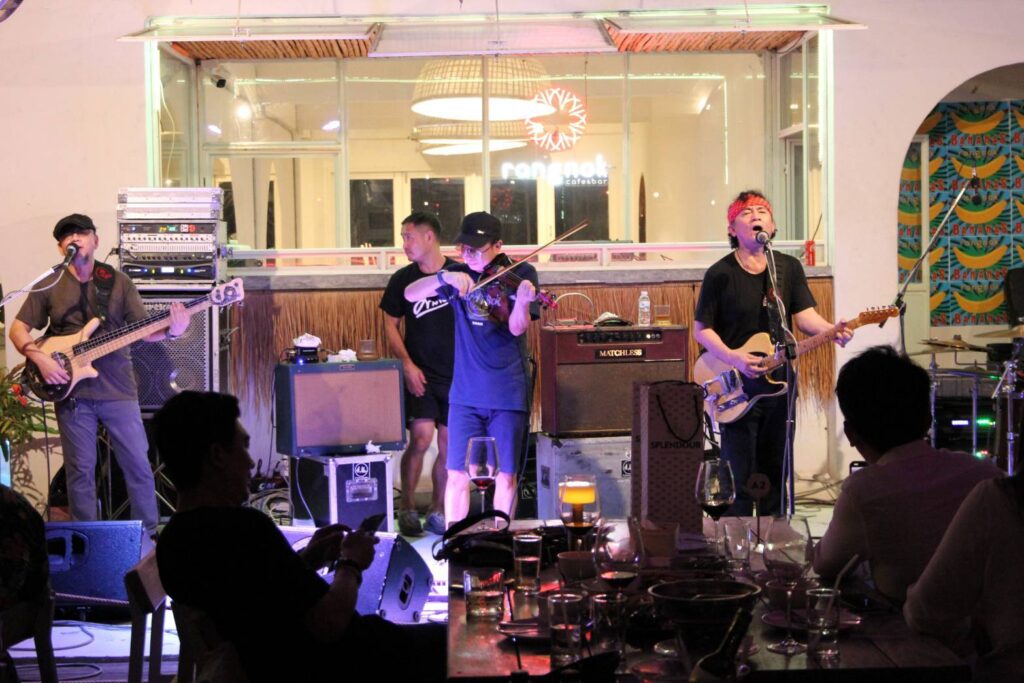 ขณะที่อาหารรองรับ ก็เป็นอาหารไทยแท้ มีบางเมนูเป็นอาหารมอญท้องถิ่น บรรยากาศของงานต้อนรับผู้ร่วมงานด้วยไวน์ Discolo โดยมีบุคคลในวงการบันเทิงมาร่วมงาน อาทิ มาดามกบ-ปภัสรา เตชะไพบูลย์ ควงคู่ลูกสาวคนสวยน้องเหนือ-ดิสรยา เตชะไพบูลย์ มาร่วมงาน รวมถึงตุ๊กกี้-สุดารัตน์ บุตรพรม ที่ควงคู่มากับสามี บูบู้ ฯลฯ ก่อนที่เสียงเพลงจะเริ่มบรรเลงด้วยวงเปิด “โหน่ง หัสดี × Never Gets Old” เน้นเล่นเพลง สากลยุค 60-90 สลับกับเชิญศิลปิน เล็ก ริมแดง และ ใหม่ สิบล้อ ซึ่งเรียกน้ำย่อยในบทเพลงคันทรี่ ร็อค ยุค 60s
