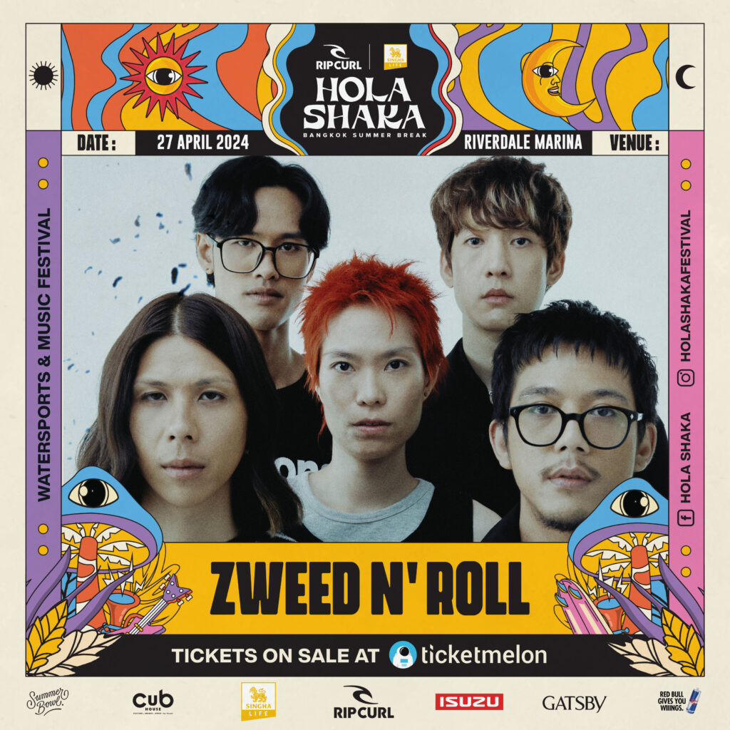 ต่อกันด้วย “SOLITUDE IS BLISS” วงดนตรีที่เต็มไปด้วยคุณภาพ และแนวดนตรีที่น่าค้นหา เจ้าของเพลงดัง “04.00 A.M.” ก็มาโชว์เสียงร้องสดๆ ในงาน “Rip Curl “HOLA SHAKA 2024 – Presented by Singha Life” เช่นกัน มาต่อกันที่วงที่ใครๆ ก็พูดถึง และรอคอยอย่าง “ZWEED N’ROLL” วงดนตรีที่ทำให้ทุก “ช่วงเวลา” มีความหมายจริงๆ เพลงมาแรงที่ทำเอาคนในงานร้องตามกันไม่หยุด และอาจจะร้องไห้ตามโดยไม่รู้ตัวก็เป็นได้