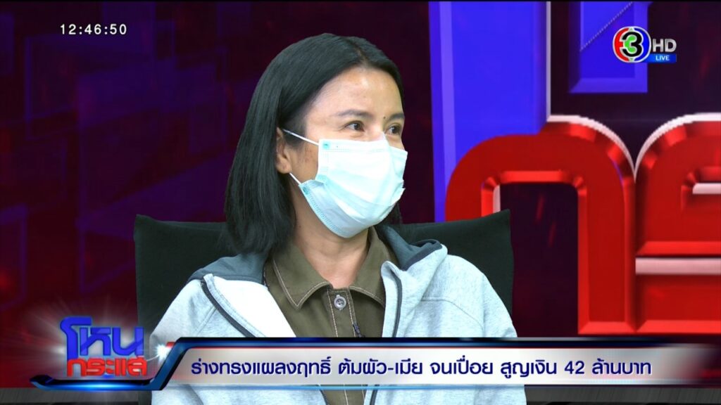 ทำไมถึงรู้ว่าถูกหลอก? สา : “เขาหลอกว่าเป็นโควิด เราทวงเงินเขา 10 ล้าน เรารู้ว่าทวงช่วงไหนถึงจะได้ตังค์ เขาหลอกว่าติดโควิดไปเข้ารพ. กับสามี เราถามอยู่รพ.ไหน เขาบอกชื่อรพ. พอเช็กพร.เขาบอกไม่มีชื่อนี้ เราก็ไม่เชื่อก็เลยขับรถไปโรงงาน ไปถามพนักงานเขา คนงานเขาบอกว่าเจ๊ไม่ได้ไปไหน เจ๊ไม่ได้ติดโควิด แล้วก็ไม่มีใครตาย เราก็เอะใจ” ทุกวันนี้ยังเปิดโรงงานผลิต? สา : “เขาโยกทรัพย์ไปหมดแล้ว ไม่อยู่แล้ว เขาย้ายทรัพย์ทุกอย่างออกจากโรงงานไปหมดแล้ว ความโง่ของเราถูกเขาหลอกไป ก็อยากให้เขาเอาเงินมาคืนเราบางส่วน ล่าสุดโดนไป 13 ล้าน เขาหลอกไปวางศาล ทั้งหมดที่เขาเอาไปล่าสุด” วางศาลอะไร? สา : “ลูกสาวมีคดีอยู่ค่ะ เป็นผู้เสียหาย เขาหลอกเราว่าจะเอาเงินไปวางศาล เขาทำทุกทางเพื่อตบทรัพย์เรา หลอกเราทุกเรื่อง มันทยอยโอนเหมือนเดิม ไม่ได้ให้ทั้งก้อน ให้เราโอนไปในนามบุคคลอื่น มีค่าอัยการอะไรก็ไม่ทราบ เขาสร้างขึ้นมาหมดเลย” เขามีการโอนเงินคืนคุณ? สา : “ให้เอาเอกสารมาเลยว่าโอนให้ตอนไหน”