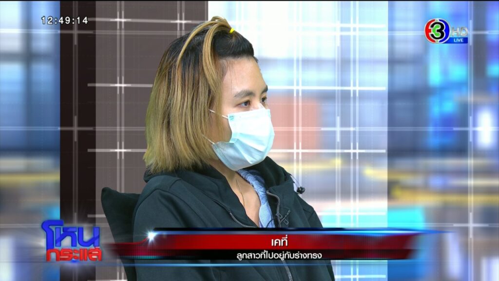 น้องเคยไปทำงานที่บ้านแล้วเขาเอาพัดลมทุ่ม จริงมั้ย? เคที่ : “หนูอยู่กับเขามานานมาก มันถึงจุดนึงทนไม่ไหว หนูโดนทารุณตลอด เขาหาเรื่องจะตีหนูทุกครั้งเลย บางทีไม้อะไรไม่รู้ยาวๆ เหมือนหวาย มาฟาดตูดช้ำดำทั้งหมดเลย เป็นรอยเส้นๆ แล้วก็เอาพัดลมฟาดด้วย” แม่รู้ว่าลูกโดนแบบนี้? สา : “แม่ไม่ทราบเลย ทราบครั้งเดียวที่บอกว่าตีสั่งสอน แต่ไม่คิดว่าจะทำร้ายร่างกายลูกเราอะไรขนาดนั้น เพราะเวลาอยู่กับเราจะพูดกันคนละเรื่องเลย” ตอนตีทรงปู่หรือคน? เคที่ : “บางทีก็เป็นคน บางทีก็ปู่ บางทีทำเสียงปู่ก็มี เขาหาเรื่องตีให้ได้ ยกตัวอย่างเตียงหนูดึงผ้าปูที่นอนไม่ตึง ย่นๆ ไม่พอใจนิดนึงก็หาเรื่องตี” ร่างทรงอายุเยอะมั้ย? สา : “38 ปี แต่ในบัตร 34”