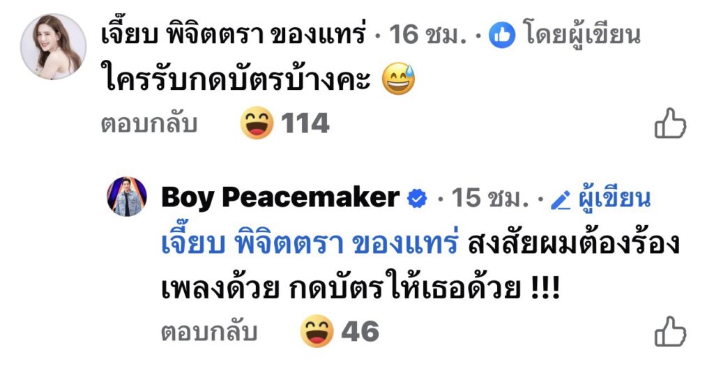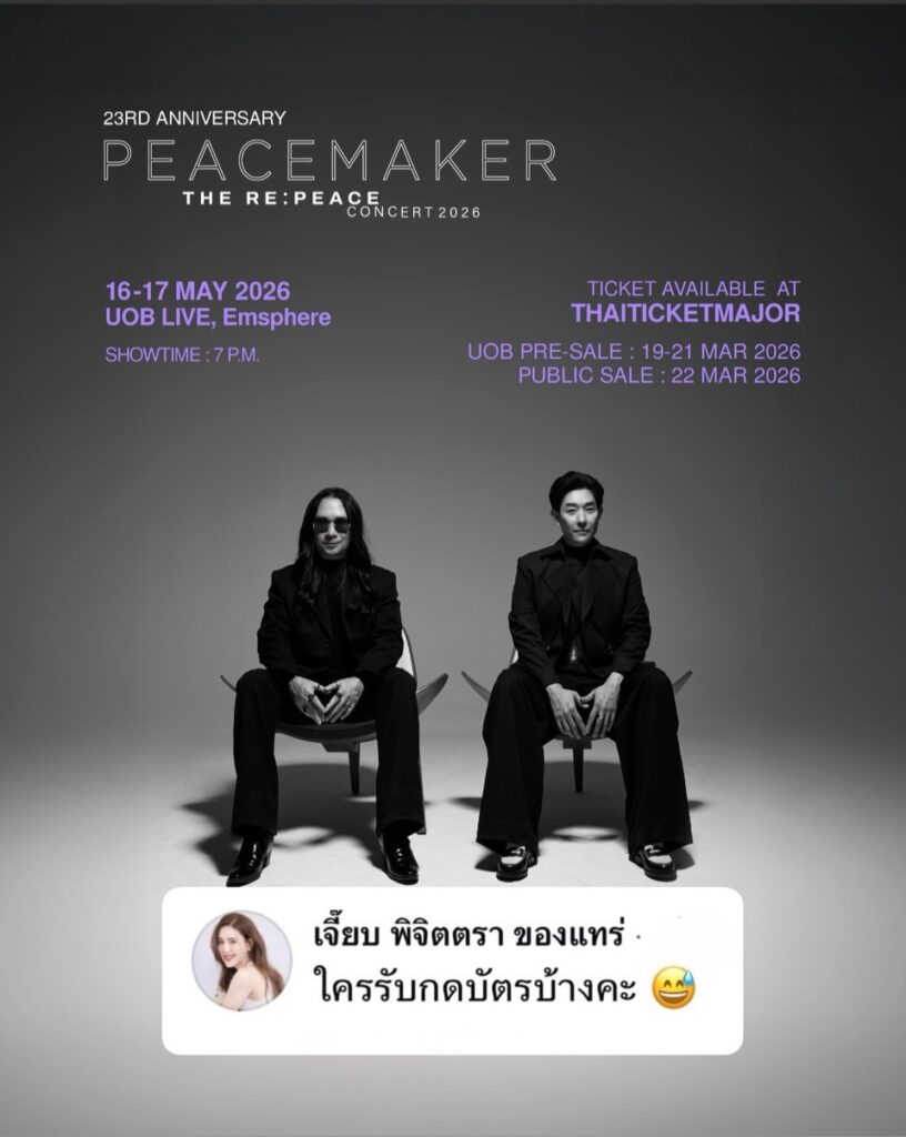 ภรรยาศิลปินยังต้องลุ้น! “เจี๊ยบ พิจิตตรา” โผล่เมนต์ใต้โพสต์ “บอย อนุวัฒน์” โปรโมทคอนเสิร์ต23 ปี PEACEMAKER THE RE:PEACE CONCERT ถามหาทีมช่วยกดบัตร แฟนๆแห่แซวสนั่น